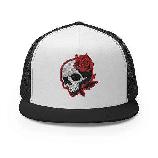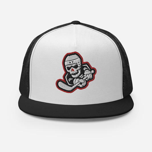 Skeleton Striker Trucker Cap in Red, Black, and White