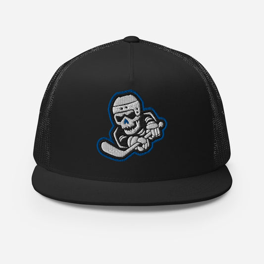 Skeleton Striker Trucker Cap in Royal Blue, Black, and White