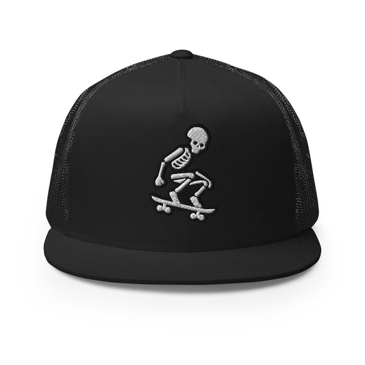 Skeleton Skater Trucker Cap in Black & White