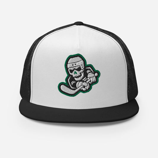 Skeleton Striker Trucker Cap in Kelly Green, Black, and White