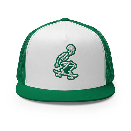 Skeleton Skater Trucker Cap in Kelly Green and White
