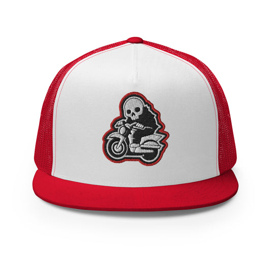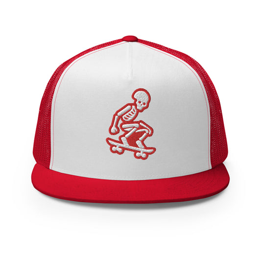 Skeleton Skater Trucker Cap in Red and White