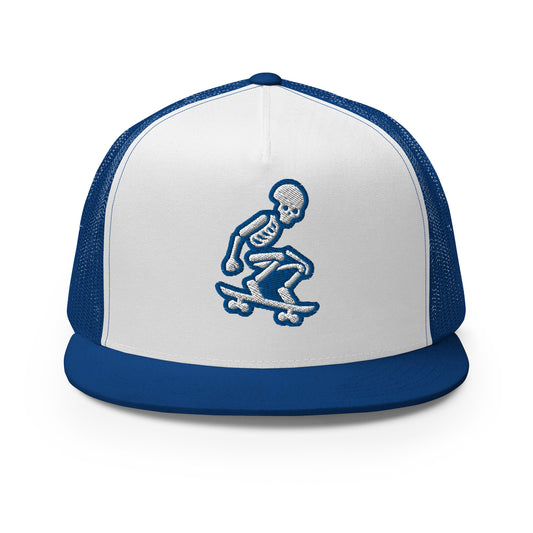 Skeleton Skater Trucker Cap in Royal Blue and White