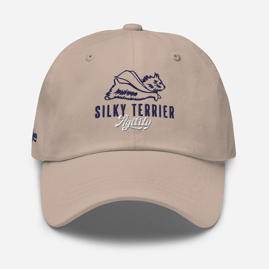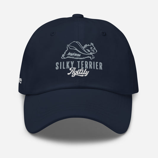 Silky Terrier Dad Hat - Custom Design - Navy/White Stitching