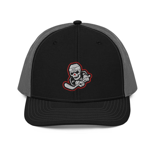 Skeleton Striker Trucker Cap in Red, Black, and White