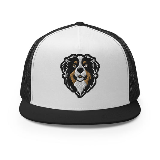 Bernese Mountain Dog Trucker Cap in Black, Gold, and White