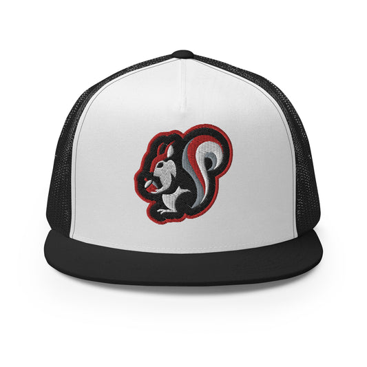 Raleigh Squirrel Trucker Cap in Red, White, Black, and Gray